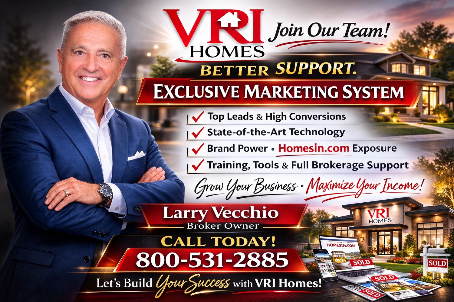 Today, Larry Vecchio continues to guide the growth of VRI Homes and the HomesIn network, combining decades of industry experience with modern digital marketing strategies.